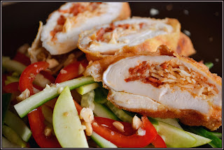 A csirkemellet 4 szép szeletre vágjuk és picikét megklopfoljuk.